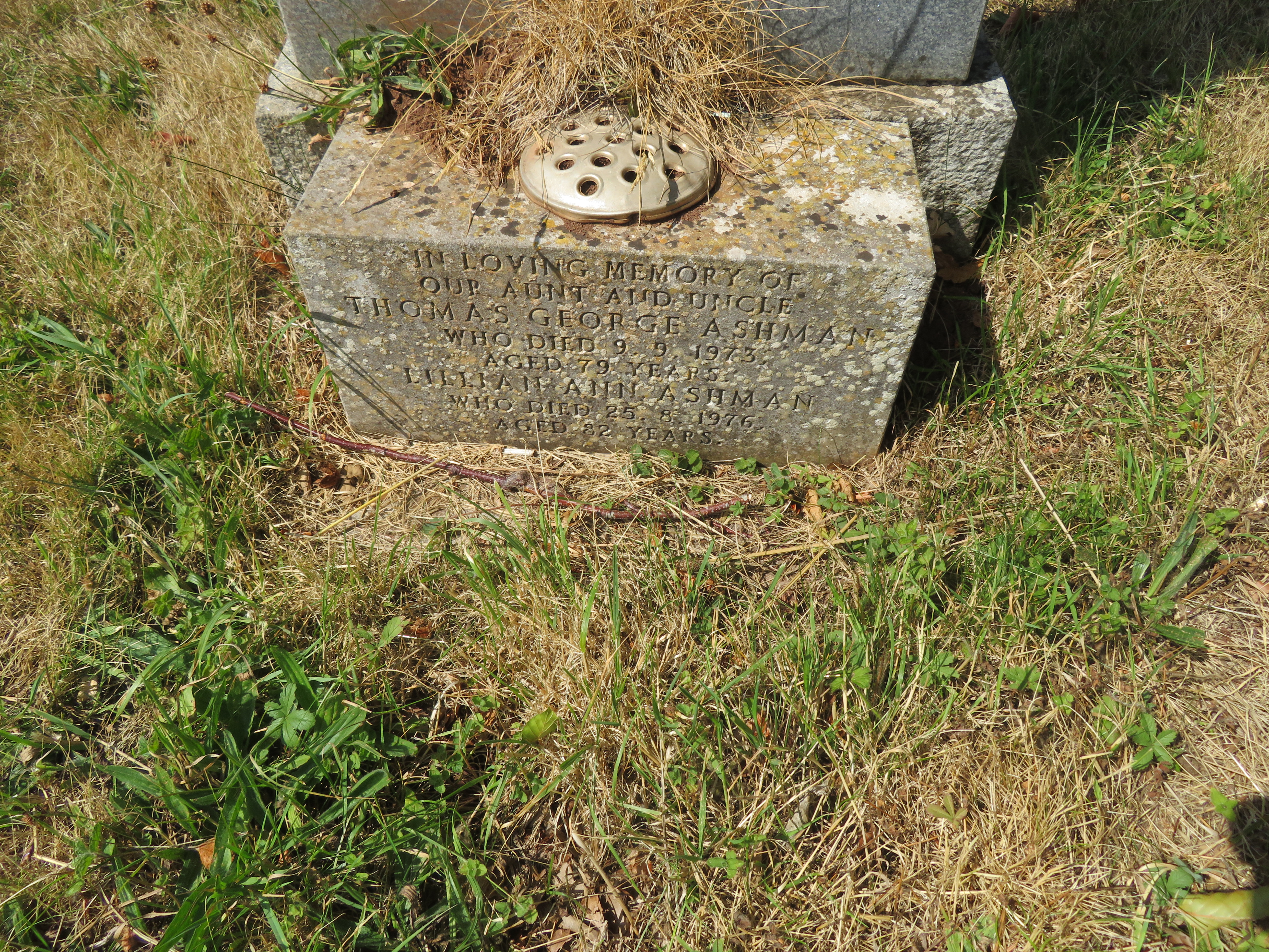 | Ashman | Lilian Ann | 25-Aug-1976 | Aug-1976 | 82 | [ashes]; of 63 Charlton Rd; w/o Thomas George, nee Shearn | View record |